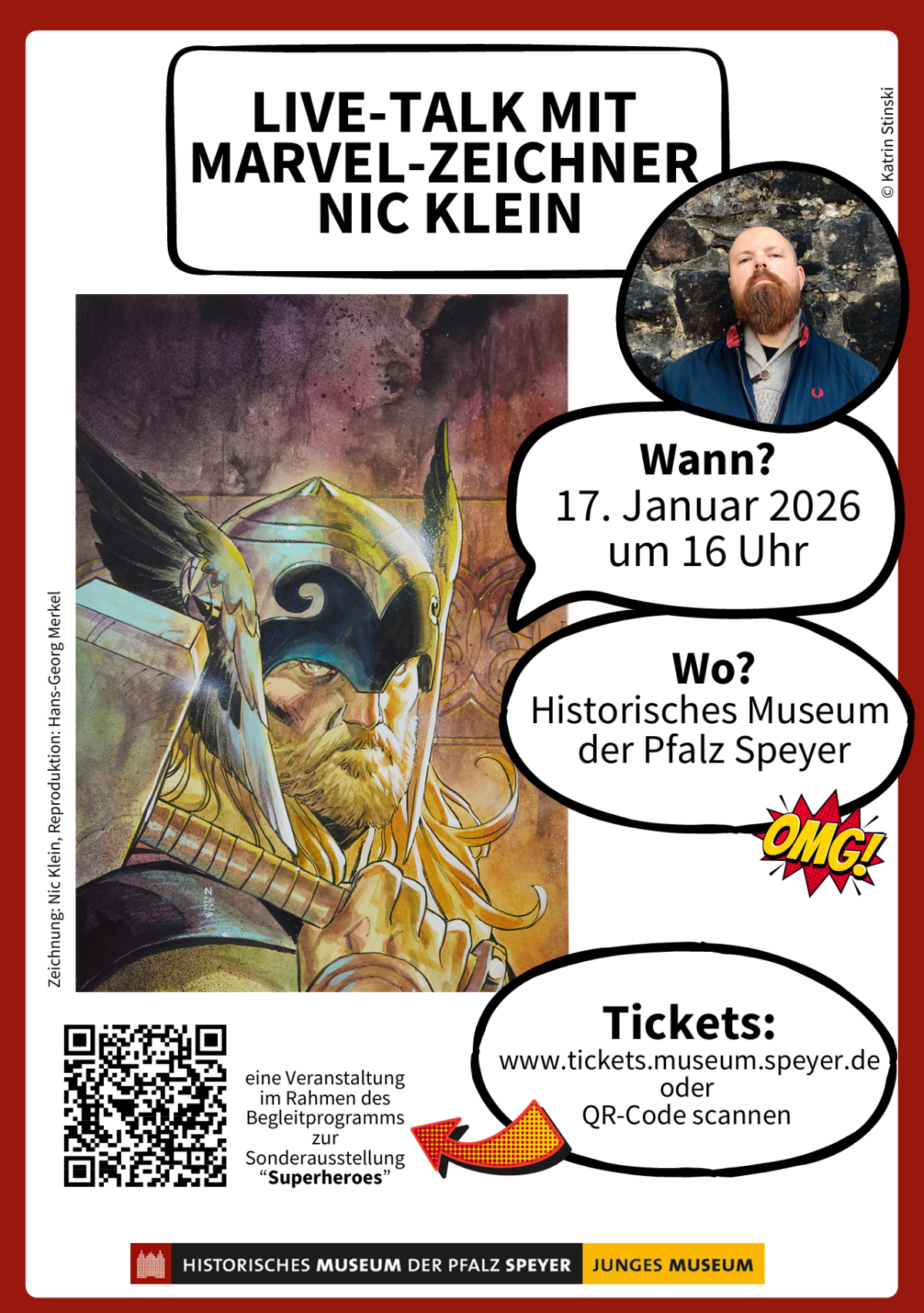 Am 17. Januar 2026 um 16 Uhr kommt Nic Klein nach Speyer ins Historische Museum der Pfalz. Er zeichnet für Marvel und DC und ist damit einer der wenigen deutschen Künstler, die den Sprung ins internationale Comicgeschäft geschafft haben.