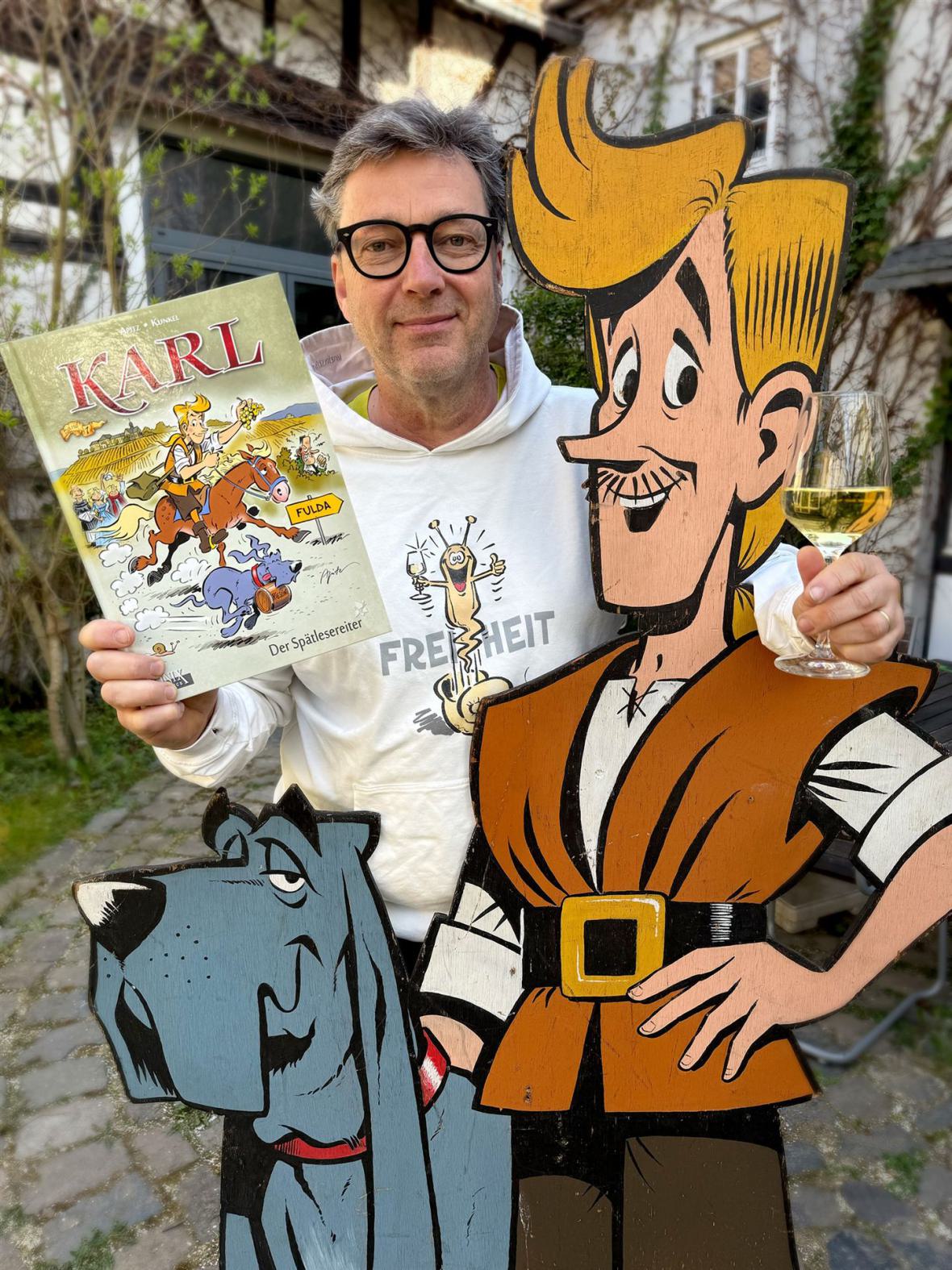Es ist fast 30 Jahre her, als sich ein Comic aus dem Rheingau anschickte, der deutsche Asterix genannt zu werden. Mit viel Lokalkolorit, interessanten Informationen zum Weinbau und einer großen Portion Humor erzählten Zeichner Michael Apitz und die Texter Patrick und Eberhard Kunkel über insgesamt zwölf Alben hinweg, die Abenteuer von Karl, dem Spätlesereiter. Mit unzähligen geschichtlichen Details und vielen zeitgenössischen Gastauftritten aus Politik und Prominenz traf Karl den Zeitgeist und wurde ins Englische, Französische und sogar ins Japanische übersetzt.