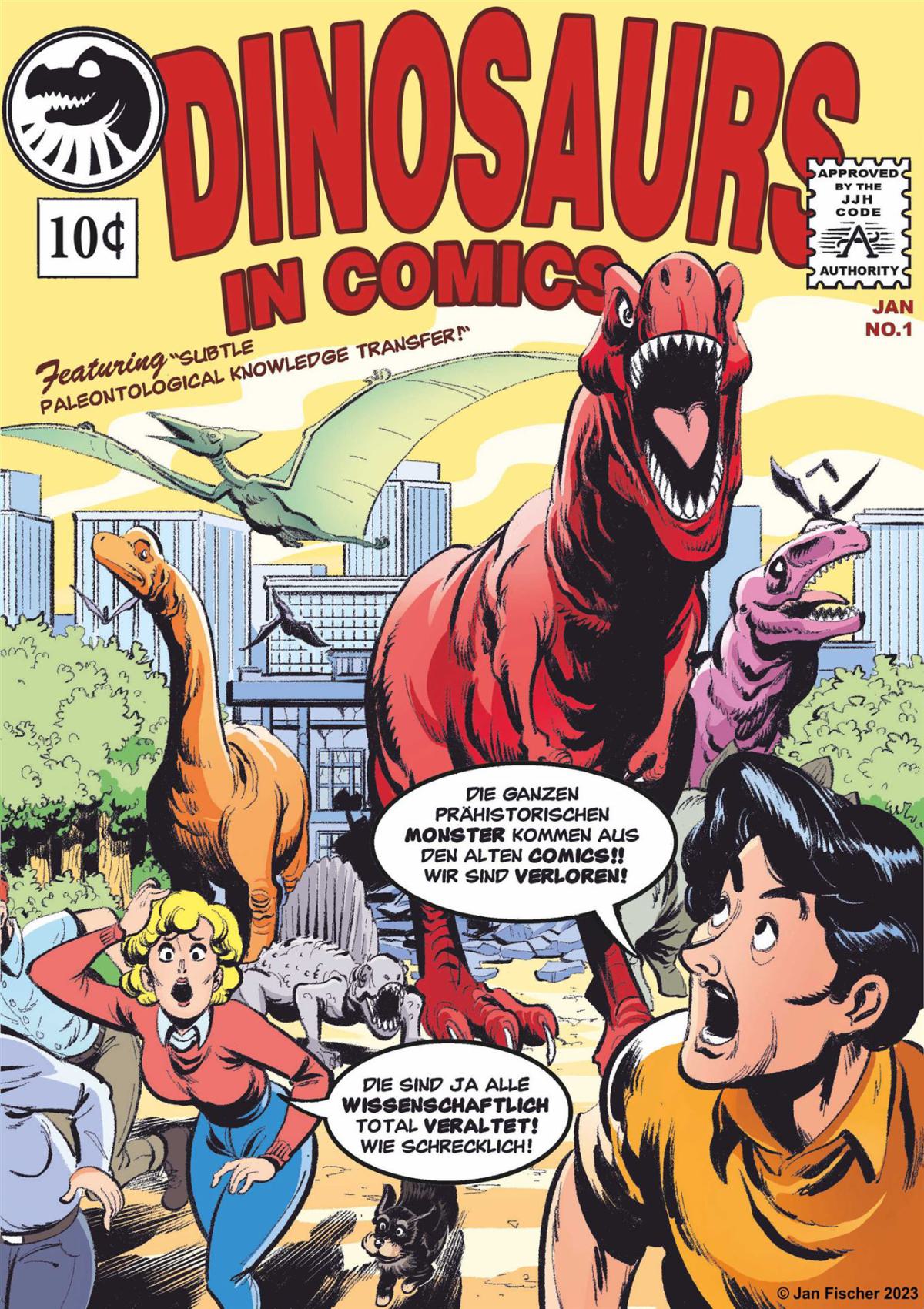 Dinosaurier in Comics klingt erstmal nicht wirklich nach einem Thema, mit dem sich wahre Paläontologen abgeben sollten - ist immerhin nur alberner Kinderkram. Oder? Tatsächlich sind Comics eines der einflussreichsten Medien, um Dinosaurier öffentlichkeitswirksam zu präsentieren. Doch Comic ist nicht gleich Comic. Den reinen Unterhaltungs- und Abenteuergeschichten, in denen Dinosaurier lediglich Beiwerk sind, stehen dokumentarische Darstellungs- und Erzählformen gegenüber, welche die Tiere als reale Lebewesen nach aktuellen Vorstellungen und mit viel Hintergrundwissen porträtieren. Echte Dinosaurier-Comics sind nicht nur etwas für Kinder, sondern probates Kommunikationsmittel wissenschaftlicher Ideen für jede Altersstufe: Bunt, aufregend, kurzweilig und dennoch informativ. Überzeugen Sie sich selbst, dass Paläontologie auch Spaß machen kann!
